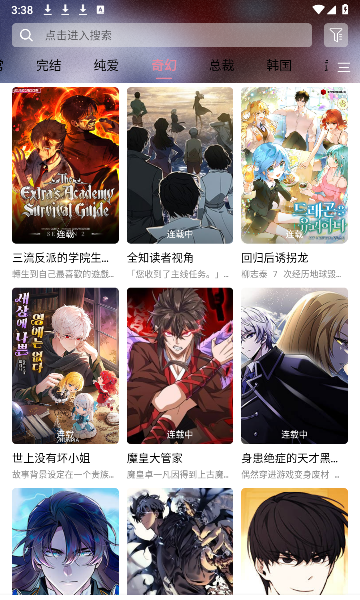 StarSkt完全免费且无广告干扰,让用户能够全身心地沉浸在漫画的世界里,无需担心被突如其来的广告打断阅读节奏。其漫画资源堪称全面,涵盖了国漫、日漫、美漫等各个领域的经典与热门作品。无论你是钟情于国漫中充满奇幻色彩的仙侠故事,还是痴迷于日漫里热血激昂的战斗场景,亦或是偏爱美漫那种独特的叙事风格和视觉冲击,StarSkt都能满足你的需求,真正做到了一站式满足漫画阅读的所有渴望。