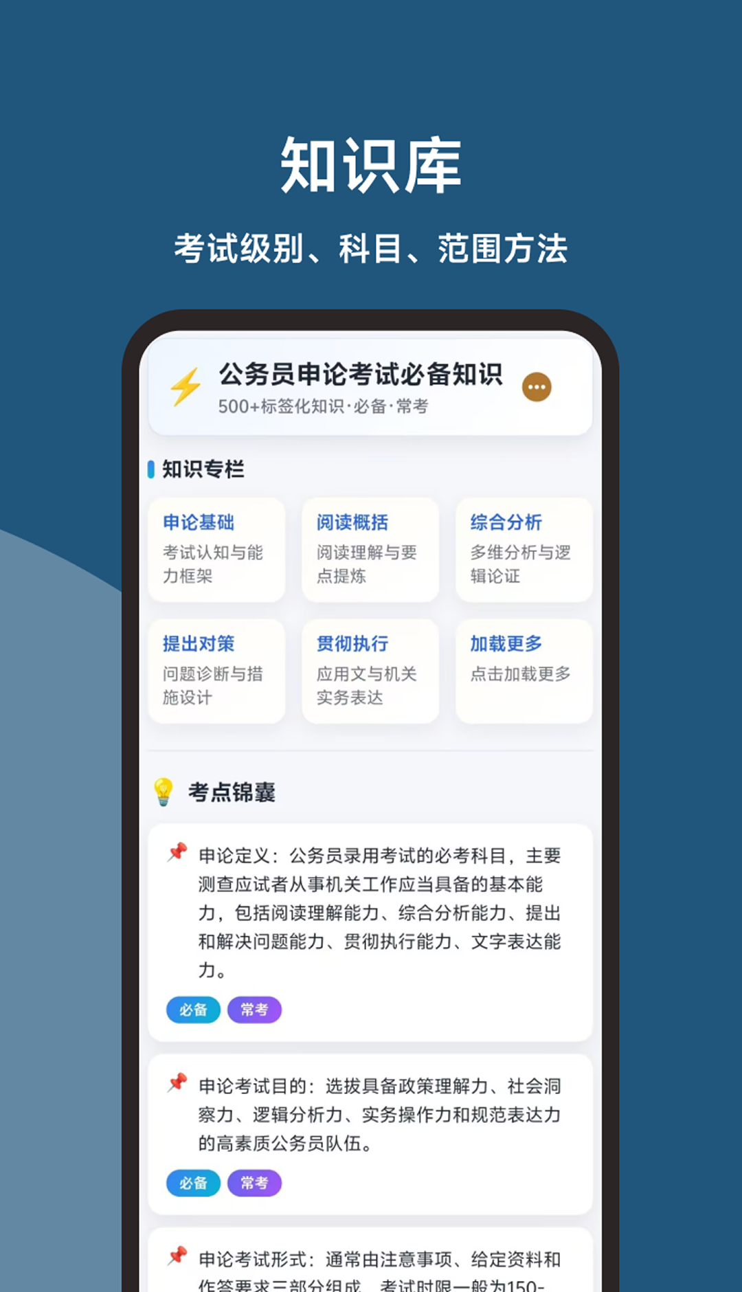 按考试大纲分模块梳理知识点,从基础常识到高分技巧,标签化呈现内容,帮你高效构建申论知识体系,告别零散记忆。