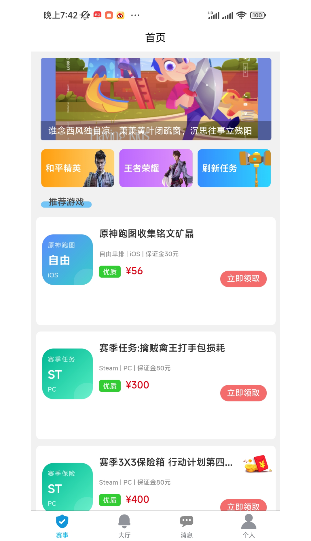 2、悬赏接单与赛事任务。提供多种游戏悬赏任务,从日常挑战到赛季任务都有覆盖,完成指定的游戏目标就能获取对应奖励,还有高价值的赛事任务,让你的游戏技术发挥更大价值。