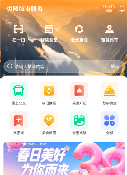 夷陵生活是一个功能强大的综合服务平台,将城市生活日常所需的各种服务细化分类,让用户可以快速访问所需服务使用,对各种城市生活服务的使用可以让用户的生活更省心便捷,满足用户多元化的生活需求,让用户的生活、出行、饮食都更便捷化。包含有的智慧食堂、智慧停车、美食地图、航班查询等诸多便捷功能可供用户日常所需使用,可随时查询实时公交动态信息,让用户乘坐公交车出行更加的省心便利。