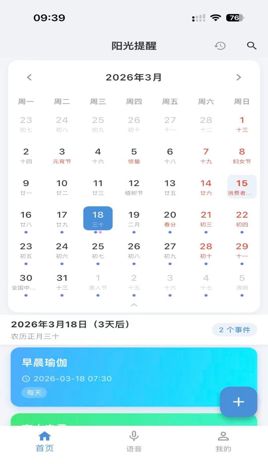 2、农历日期支持:完美支持农历日期提醒,再也不会错过传统节日和生日。