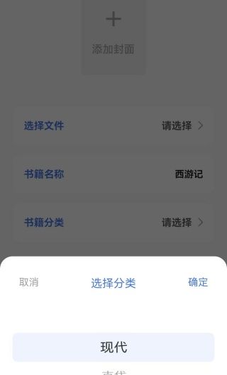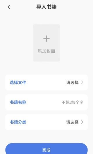2、进入导入书籍的界面,大家可以在这里添加封面、选择文件、填写书籍名称等。