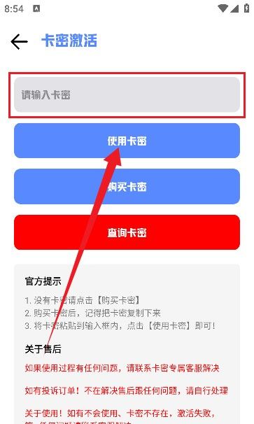3、将卡密粘贴到输入框内,点击【使用卡密】即可。