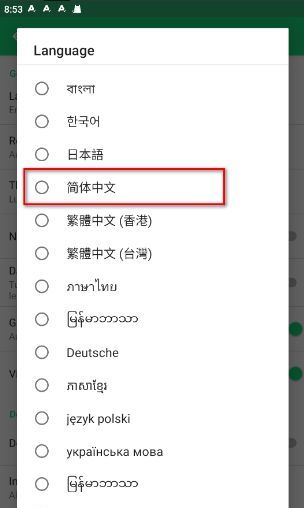 2、点击这里的language 找到中文选项即可。