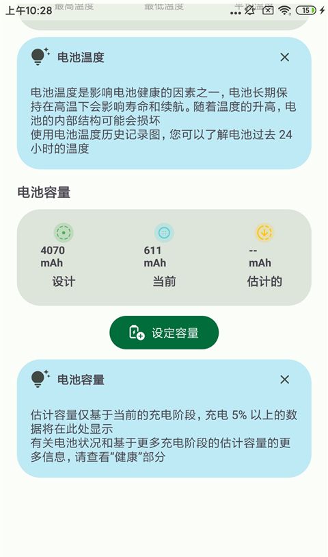 5、查看电池容量,估计容量仅基于当前的充电阶段。
