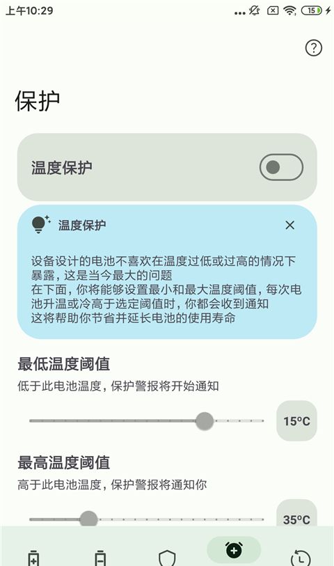 6、开启充电保护,可以防止温度过高,延长电池的使用寿命。