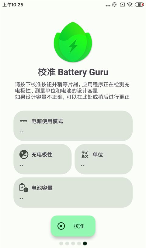 1、通过本站下载BatteryGuru电池检测并打开,完成新手引导后点击校准。