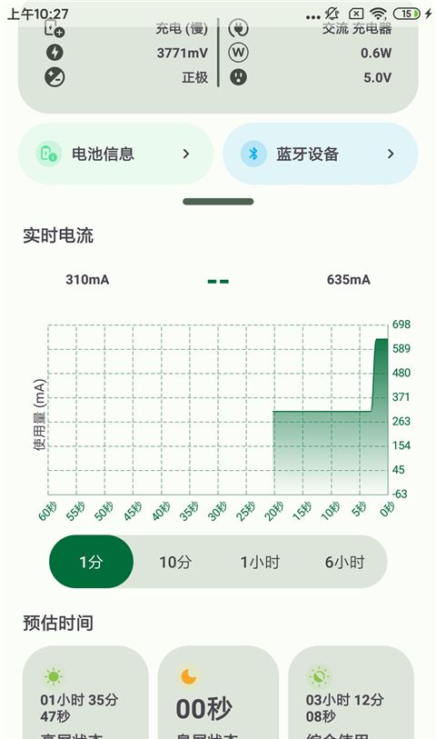 3、点击充电,可以显示充电时候的实时电流,预估你的充电时间。