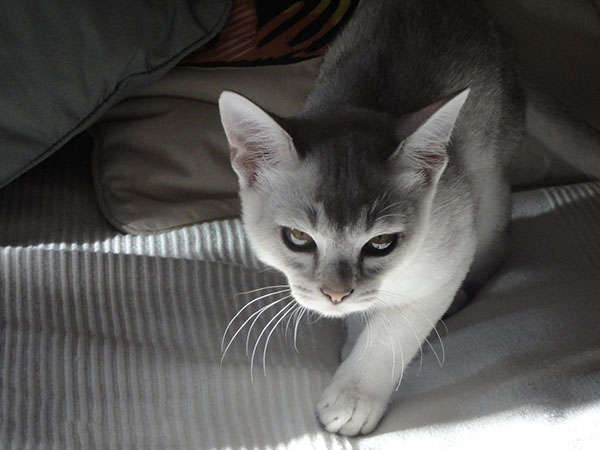 头、腿和尾巴上看得到少许较深色的斑纹。该品种猫咪的毛色很多,包括黑色、蓝色、棕色和巧克力色等。红色、奶油色等的猫咪在澳大利亚尚未被认可。