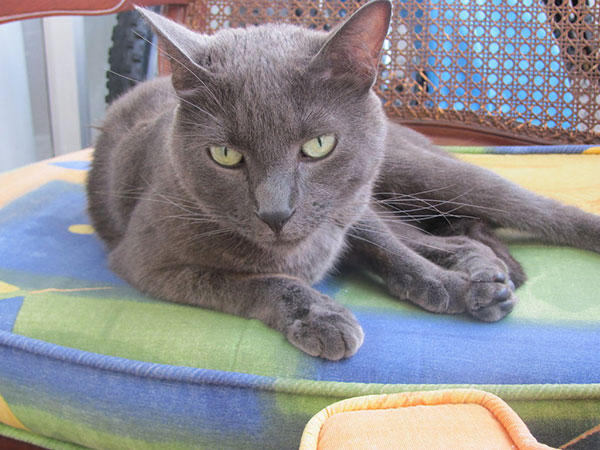 和俄罗斯蓝猫一样,呵叻猫的体毛清一色蓝色、没有斑纹。由于没有下层毛的缘故,体毛浓密,有像丝一样光泽。同时,一根根毛之间有银灰色插入,可反射光线,使得全身散发出银色的光芒。另外,科拉特猫的另一特色,就是其他猫所没有的心型脸。耳朵大,前端略带圆状,是位于头部较高的位置。绿色的眼睛。又大又圆,稍稍突出。