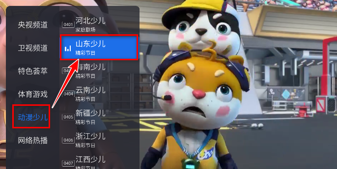 2、在这里小编以点击动漫少儿,山东少儿为例。
