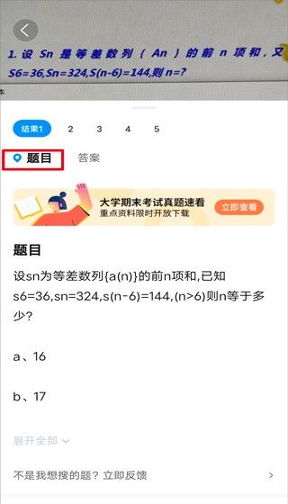 5、确认后手机上会出现相应题目,找到要搜的题目即可。