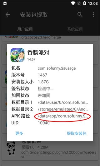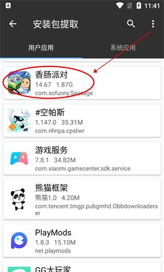 2、找到并点击自己需要提取安装包的游戏(以香肠派对为例);