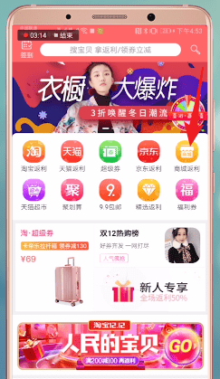 4、首页点击【商城返利】选中想要购买的商城,点击进入商城购物。