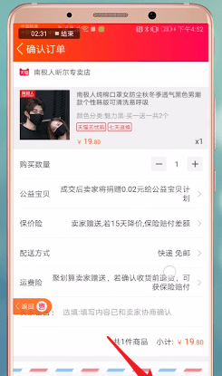 2、点击想要购买的商品显示“有返利”后(不显示有返利而显示券后价的商品返金币)会自动跳转到淘宝页面,点击【提交订单】下单付款。