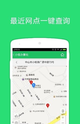 2、中山中心各业务网点及地图信息查询;