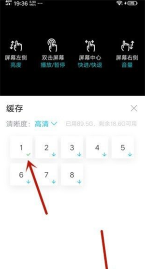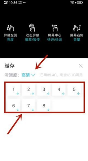 4、能够在弹出的页面中选择清晰度,以及用户需要下载集数,然后点击下面的显示蓝色的↓标识。