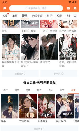 3、在这里,您可以看到各种类型的漫画作品,如热门连载、推荐列表等,你可以根据自己的兴趣选择感兴趣的漫画进行阅读。