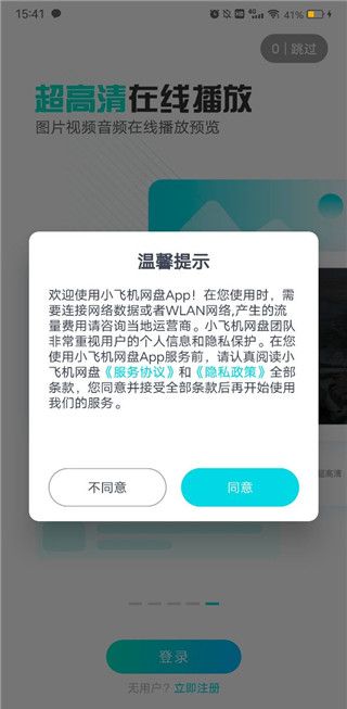 1、首先在本站下载小飞机网盘app后点击打开并同意许可协议。