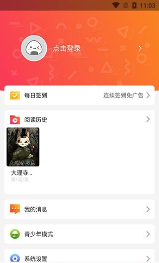 6、在这里,大家可以进行每日签到,以及查看自己的阅读历史,还可以设置青年模式等。