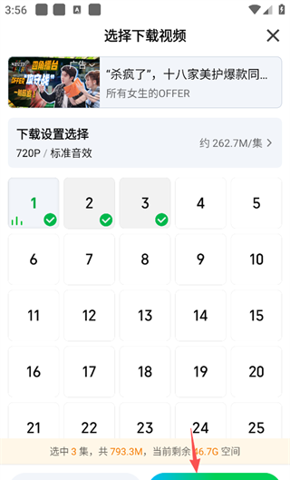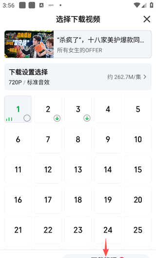 5、选择需要下载的集数,随后点击屏幕右下角的“开始下载”。