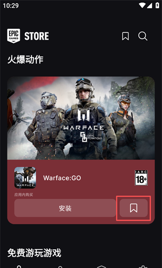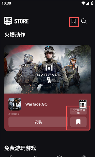 1、打开EPIC,找到你感兴趣的游戏,在“安装”按钮旁点击收藏图标。