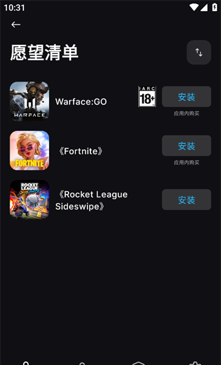 3、点击右上角搜索按钮旁的愿望清单图标,即可查看你已收藏的所有游戏。