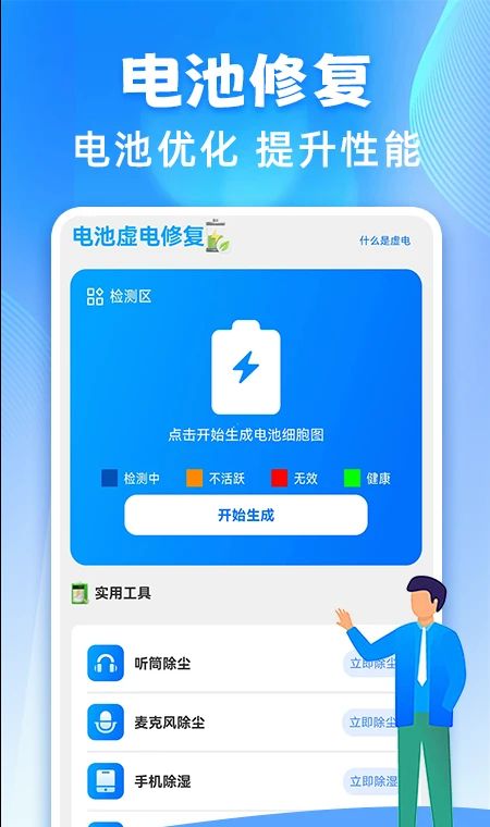 电池医生检测是一款手机必备的电池检测工具,拥有全新的界面设计,用户可以直接进入首页中自动检测电池信息和状态,轻松了解手机电池数据,随时享受便携的电池优化过程,还自带多样化的充电模式,允许用户轻松应用设置,随时随地快速充电,给用户带来全面的服务和体验,还具有丰富的功能和选项,可以自由查看手机信息并保护手机电池健康和隐私,能完全满足所有使用需求,有需要的用户欢迎下载软件。