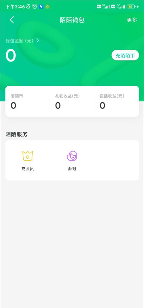 3、钱包的右上部分,有一个白色的“充陌陌币”的按钮,我们点击这里。