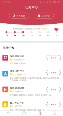5、如果你不知道如何赚取硬币,你可以通过点击软件中的任务,完成任务,然后点击任务中的兑换中心来兑换特权,从而获得金币。