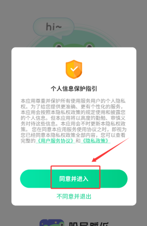 1、阅读隐私保护指南,点击红色标记的同意和输入按钮。