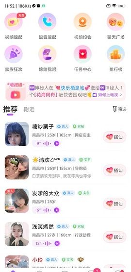 甜遇是一款专为年轻人打造的在线交友聊天平台,用户将在这里与万千陌生人相遇,展开一段缘分之旅!软件汇聚海量优质用户异性,用户点击主页即可查看该异性的身高、职业等个人信息,还可查看ta最近发布的动态,了解ta生活中的状态。软件设有多种交友玩法,视频速配、语音速配、游戏速配等等,每天一种新鲜交友玩法,早日遇见心动之人!即刻来甜遇App,交友脱单更快一步!