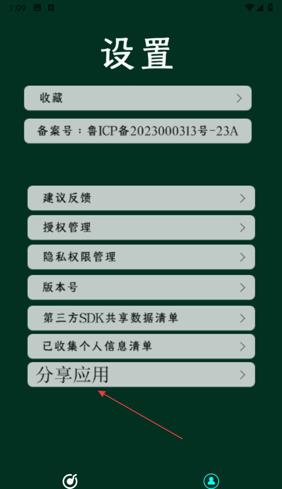 2、在设置页面,点击【分享应用】,进入分享页面。