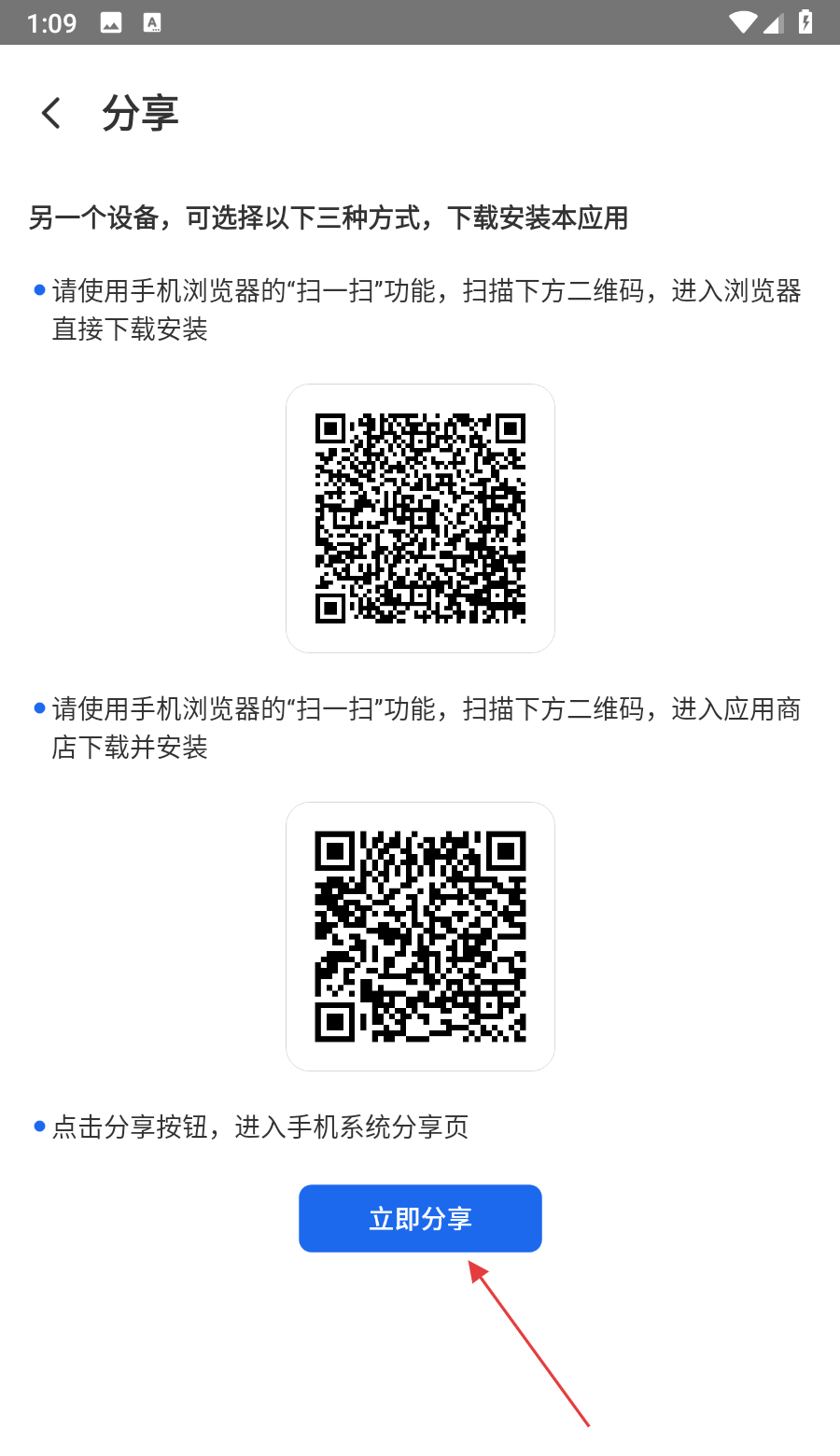 3、在分享页面,点击【立即分享】,弹出分享选项。