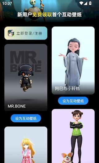 1、打开次元互动壁纸应用程序后,您可以看到各种图像,然后单击将其设置为交互式壁纸。