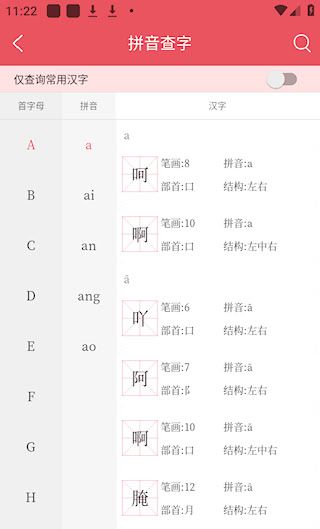 3、包含标准的发音和全面的汉字集合,允许用户进行集中搜索。
