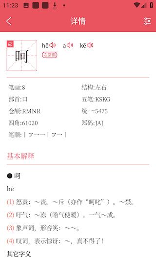 2、涵盖了广泛的汉字知识,包括属性,解释,英语和各种其他类型的知识。