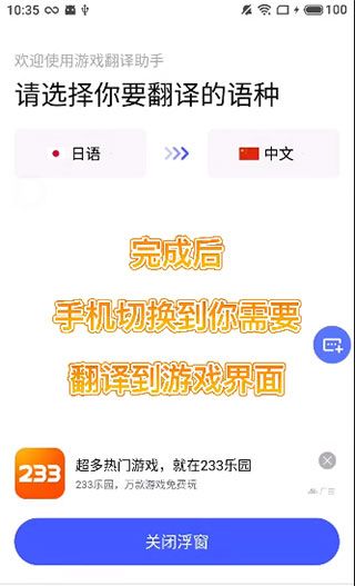 1、从本站下载官方版的游戏翻译助手apk,安装后点击【启动浮窗】。