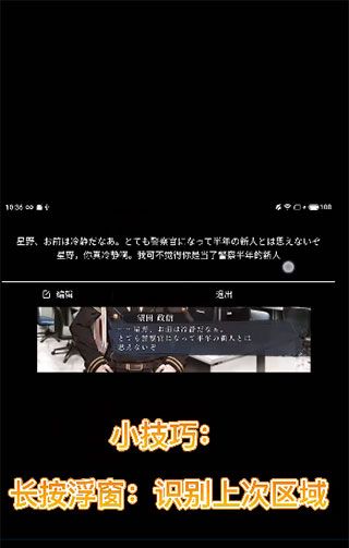 12、小技巧“长按浮窗,可以识别上次区域”。