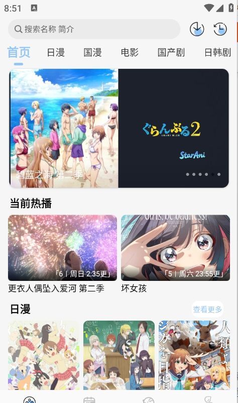2、首页为用户提供了很多的动漫类型,日漫、韩漫以及国漫等都有。