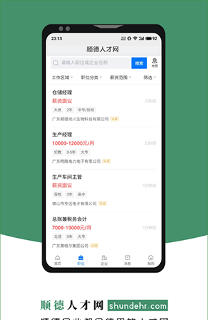 顺德人才网app是一款在求职和招聘领域具有影响力和实用性的在线软件。凭借其卓越的功能和丰富的资源,顺德人才网app为求职者开辟了一条便捷、高效、准确的道路。该软件包含大量高质量的工作信息,这些信息来自广泛的来源,涵盖了顺德地区的许多不同行业和领域。无论是家电制造、机械加工等蓬勃发展的制造业,都提供了从一线工人到技术研发工程师、生产管理岗位等多种选择。工作岗位的多样性确保了具有不同专业背景、职业规划和工作经验的用户能够找到他们想要的潜在机会,大大拓宽了他们的就业视野!