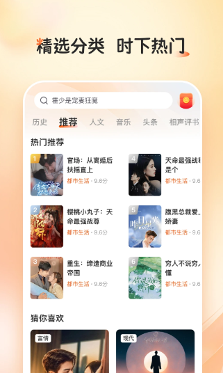 4、推荐选择根据用户可能喜欢的有声读物内容提供推荐,并可参与推荐的图书收听。