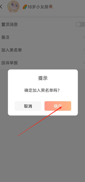 3、用户在展开的功能中点击加入黑名单,在系统弹出的提示内容中点击确定即可。