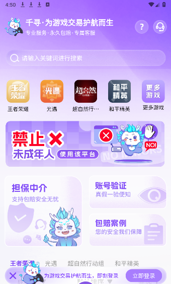 千寻代售提供大量热门游戏账号交易平台。专业评估师团队利用大数据算法分析市场变化,来鉴定游戏的价值。所有商品都有专人审核,过滤虚假账号和不可信卖家,作为中介与买卖双方签订电子合同。提供永久补偿服务,账号恢复7天不恢复+补偿费用。采用多重加密技术和实名认证系统,确保交易安全。整合先进的交易系统,严格的审核机制,完善的客户服务体系。提供一键下单、自动发货等功能,交易快捷高效。