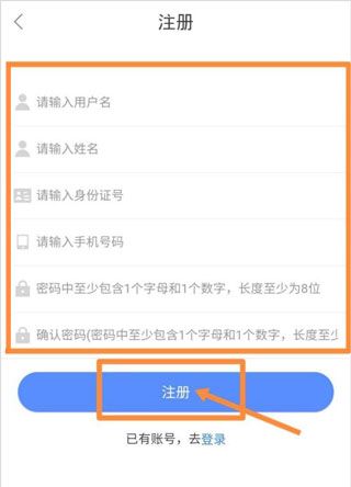 4、最后,输入用户名,身份证号码,密码等信息,点击注册即可。