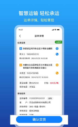2、承运管理:提供详细的承运信息,包括货物详情、运输路线、预计到达时间等,让司机对整个运输过程了如指掌。
