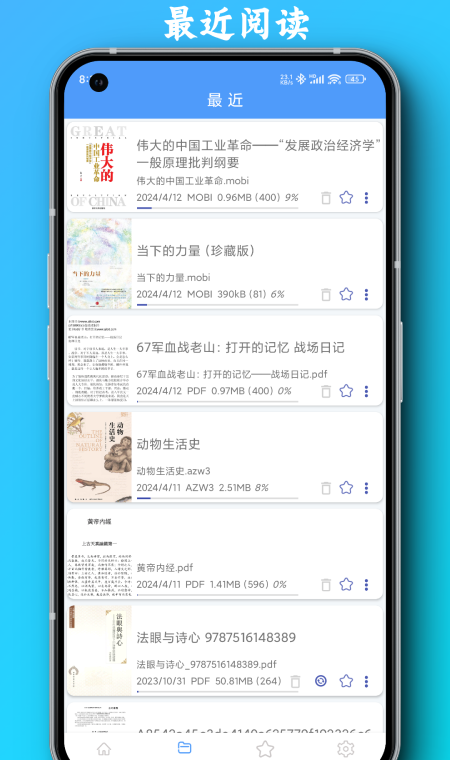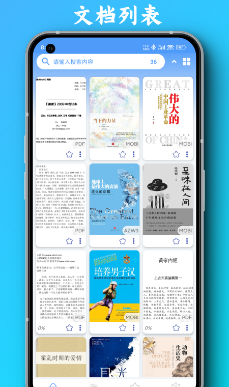 PDF全能阅读器是一款强大的阅读工具,专为阅读爱好者设计。它不仅支持多种文档格式,包括PDF、EPUB电子书、MOBI电子书、AZW电子书、TXT文本、DOCX和DOC文档,还具备一系列强大的功能,支持Kindle格式如自动翻页、 全文搜索、目录导航和夜间模式。
