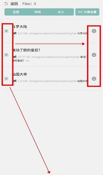 4、可以看到已下载的小说,在前面勾选需要导入到tt阅读器中的作品,点击右边【+】可直接添加,或是【+导入】。