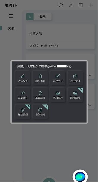 6、完成上述操作后能在首页看到已导入的小说,长按想要处理的小说。