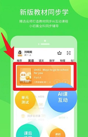 3、登录成功后,点击首页推荐的课程封面,可进入教材详情页,开始对应章节的AI互动学习任务。